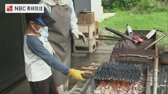 あご漁が盛んな新上五島町で、地元の小学生が焼きあごづくりに挑戦しました。新上五島町の特産品の一つ「焼きあご」作りに挑戦したのは、北魚目小学校の児童8人です。子どもたちは、体長およそ15センチのアゴを水…