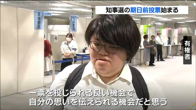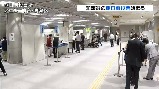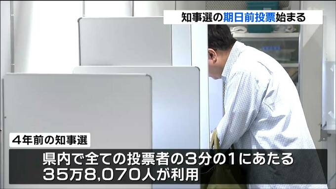 期日前投票は、投票日に仕事や旅行などの予定がある人が事前に投票できる制度です。前回4年前の知事選では宮城県内で全ての投票者の3分の1にあたる35万8070人が利用しました。