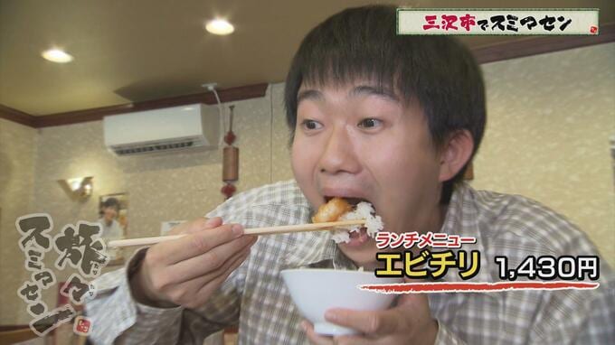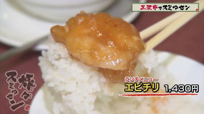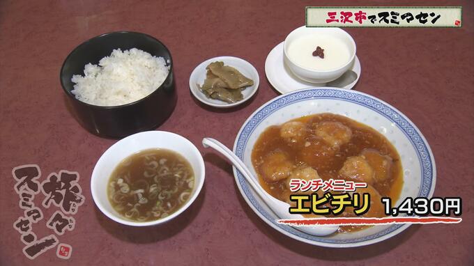 新井アナは店主おススメの『エビチリランチ』(1430円)を注文。大ぶりのエビがたっぷり入っています。