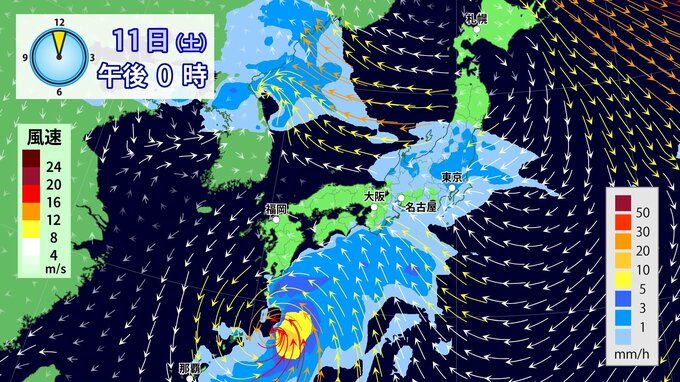 【台風情報】台風23号「ナクリー」南大東島から奄美大島近海へ 北上しながら勢力強まる見込み 12日には中心気圧985hPaまで急降下の予測【雨と風のシミュレーション】|TBS NEWS DIG