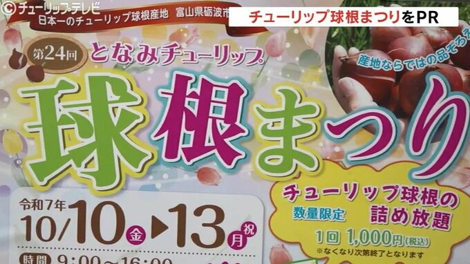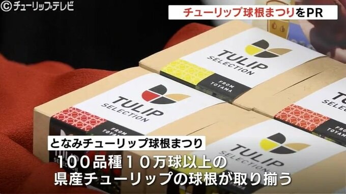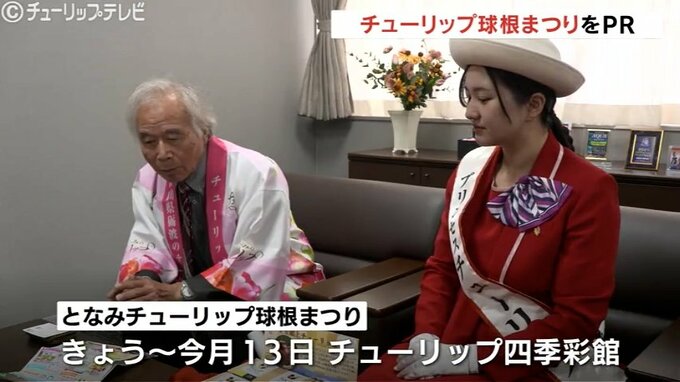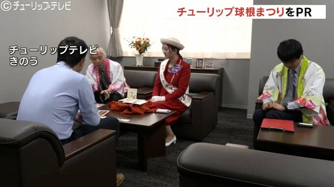 10日から富山県砺波市で開催されている「となみチューリップ球根まつり」のPRにプリンセスチューリップがチューリップテレビを訪れました。