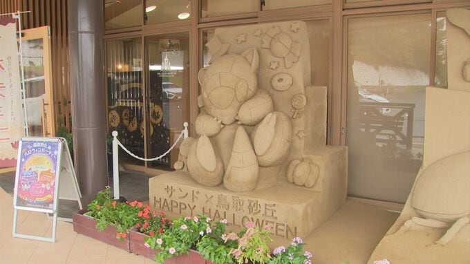 鳥取砂丘砂の美術館にお目見えしたのは…とっとりふるさと大使のポケモン「サンド」のハロウィーン砂像。