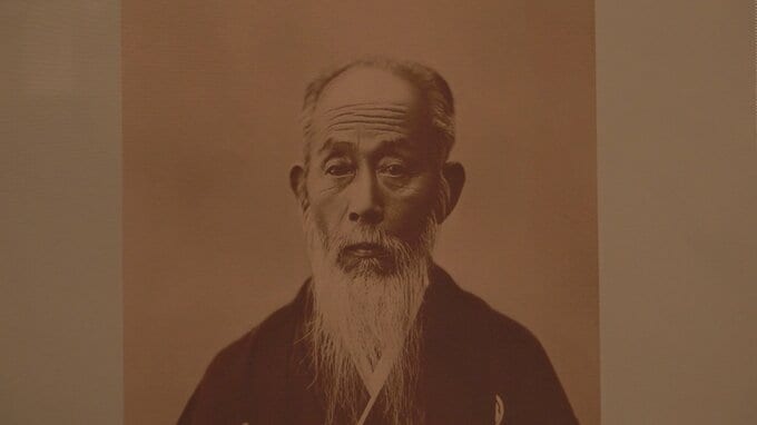 花ござの伝統技法の1つ「錦莞莚」は、倉敷市茶屋町出身の磯崎眠亀【画像②】が発明しました。その緻密で美しいデザインは海外からも高い評価を受け、岡山県が花ござの生産と輸出で世界に名を馳せるきっかけにもなりました。