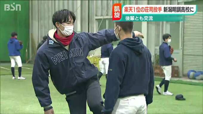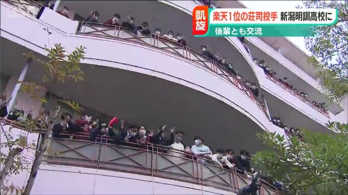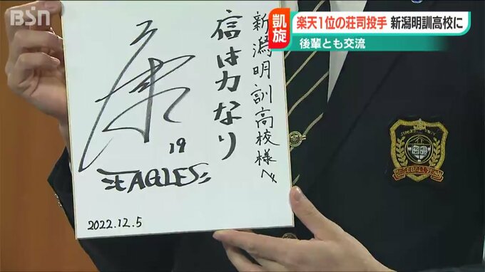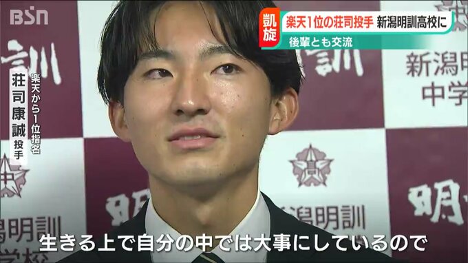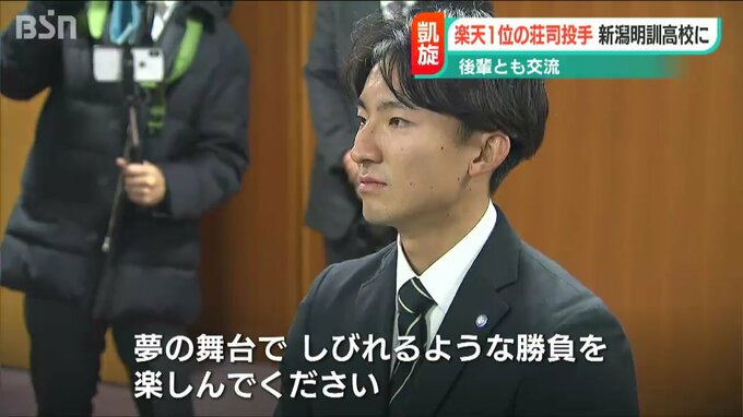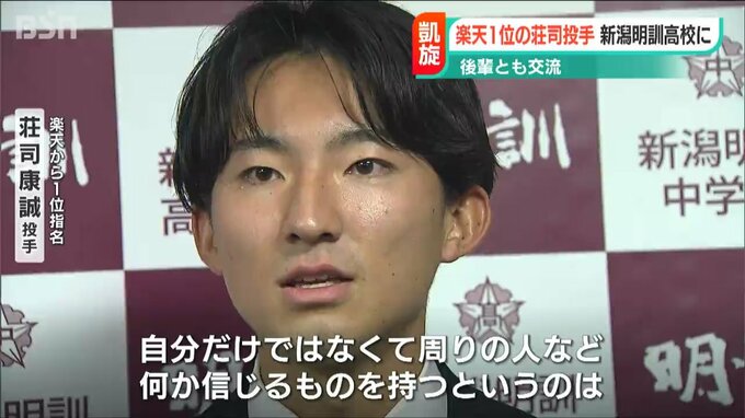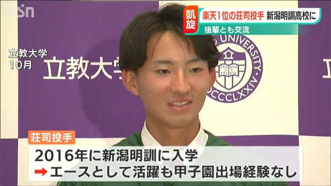 プロ野球・ドラフト会議で楽天から1位指名を受けた立教大学の荘司康誠投手が母校の新潟明訓高校を訪れ、プロでの活躍を誓いました。