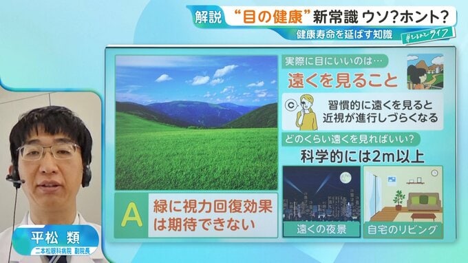平松医師によると、完全な視力回復にはならないが、より鮮明に見ることができ目が疲れにくくなる効果が期待できるといいます。