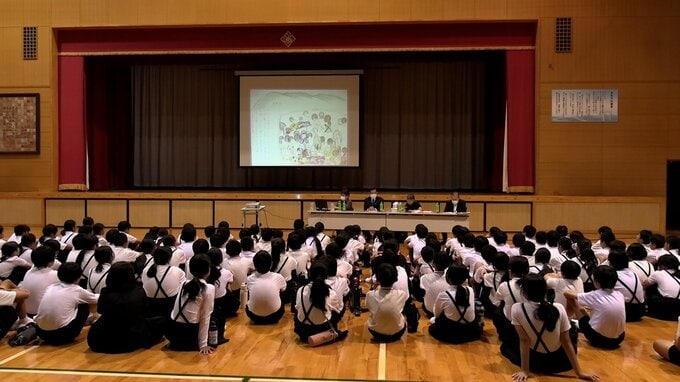 倉敷市の長尾小学校で行われた平和学習です。岡山県原爆被爆者会倉敷支部のメンバーが、6年生約140人に自身の広島での被爆体験を語りました。原爆投下後に多くの人が亡くなった凄惨な様子ととともに、終戦後に苦しめられた病気や差別についても伝え、「平和」の大切さを訴えていました。