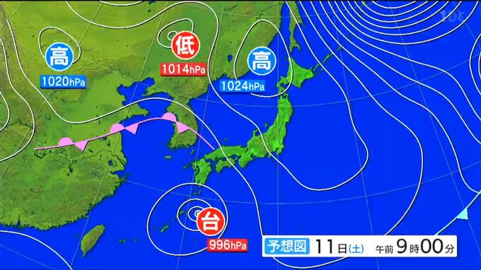 台風23号は、南西諸島に接近するおそれがあります。秋雨前線は、本州付近に伸びてくる見込みです。