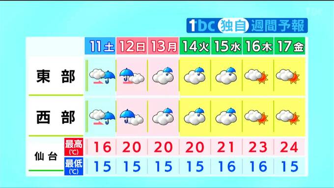 最低気温は、12℃から15℃と、10月10日の朝よりやや高いでしょう。最高気温は、16℃から17℃と、11月上旬並みの肌寒さとなりそうです。