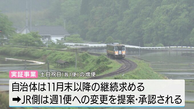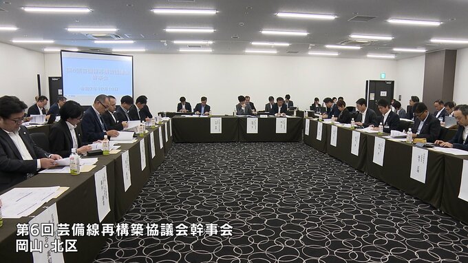 近年の利用低迷に伴い、存続か廃止かを議論する芸備線再構築協議会です。きょう(10日)は実務者らによる幹事会が岡山市北区で開かれました。現在、実証事業として土・日・祝日にそれぞれ1便ずつ行われている増便について、自治体側は11月末以降も継続を求めていたのに対し、JR側は人材確保が困難として週1便への変更を提案し、これが承認されました。
