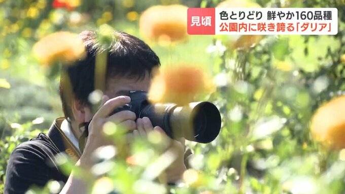 公園内を咲きほこるダリアを写真に収めようと多くの人が訪れています。