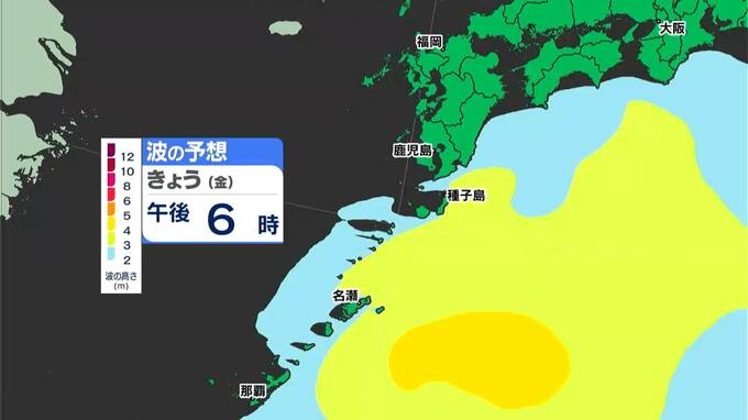 では、波の予想です。台風が大回りしない予想に変わったため、きのう9日までと比べると大しけまでは高くならない見込みです。
