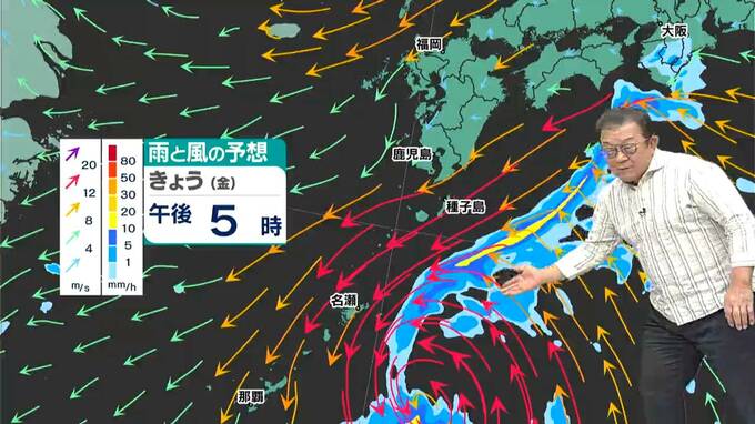 では、雨だけの予想にしてこの後動かしていきましょう。台風本体の雨雲は10日の昼ぐらいからかかってきそうです。奄美、十島村、種子島・屋久島と雨雲が北上していくでしょう。11日の夜以降は、種子島・屋久島付近が雨風の中心となりそうです。
