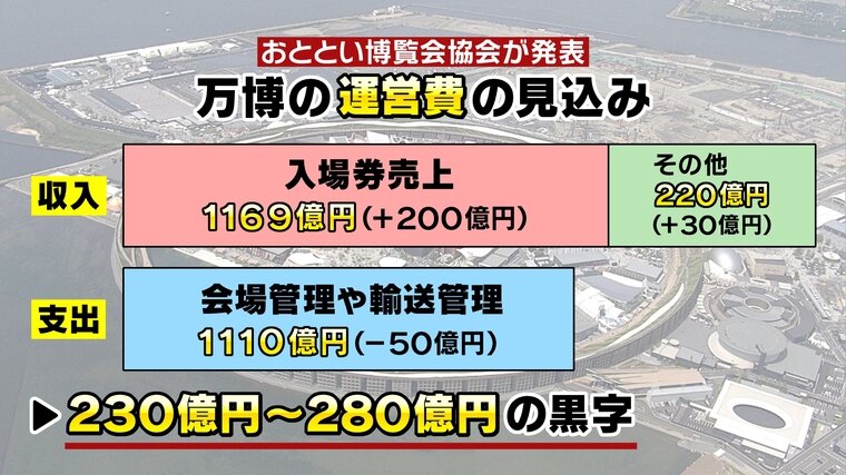 万博開催で多くの観光客が来たことによる経済効果なども含めると、プラスのお金が膨らむ可能性もありますが、運営費が黒字でも、それ以外にこうしたお金がかかっていることを知っておく必要があります。
