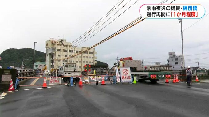 ことし8月の霧島・姶良集中豪雨で被害を受け通行止めとなっていた姶良市加治木町の網掛橋について鹿児島国道事務所は通行再開まで1か月程度かかる見通しを発表しました。姶良市加治木町の国道10号、網掛橋は、こと…