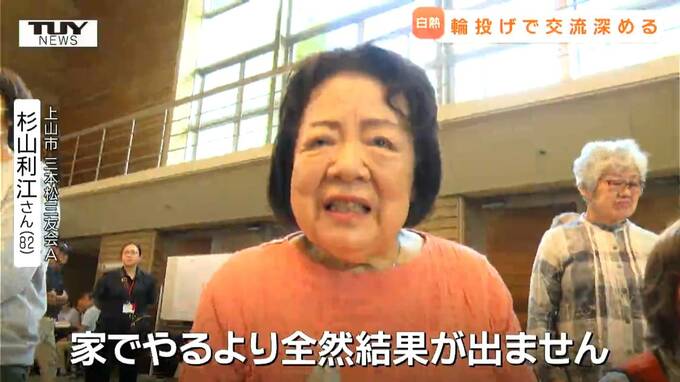 上山市 三本松三友会A 杉山利江さん(82)「家でやるより全然結果が出ません!やっぱりここは違う。精神的に・・根性あるけどダメだった。でも健康でここに来られただけでも幸せ」