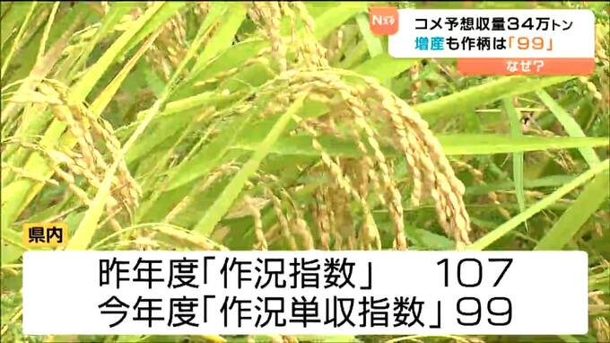 2025年度、宮城県内のコメの収穫量は34万900トンと、2024年度より2万トン近く増える見込みです。ただ、コメの作柄を示す新たな指数は、「99」と平均値を下回っています。東北農政局によりますと、9月25日現在、宮…