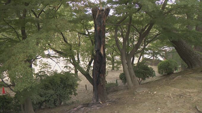 名古屋城の事務所職員らが消火器で消火にあたり、火は約30分後に消し止められましたが、高さ2メートルほどのサクラの木1本が焼けました。
