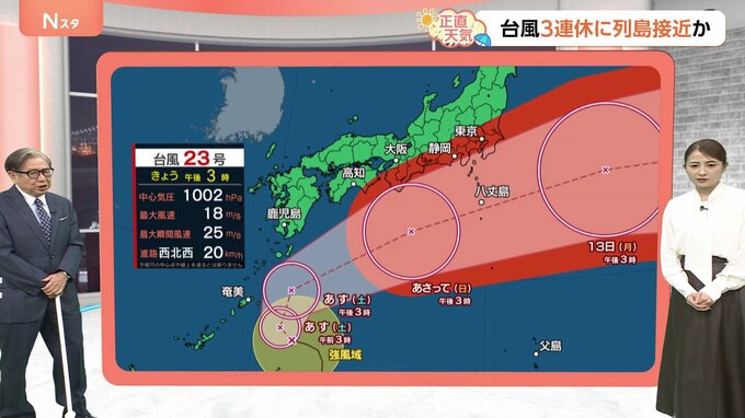 10月11日の関東の天気を日比麻音子キャスター、森田正光気象予報士がお伝えします。・台風3連休に列島接近か・関東は朝から冷たい雨に