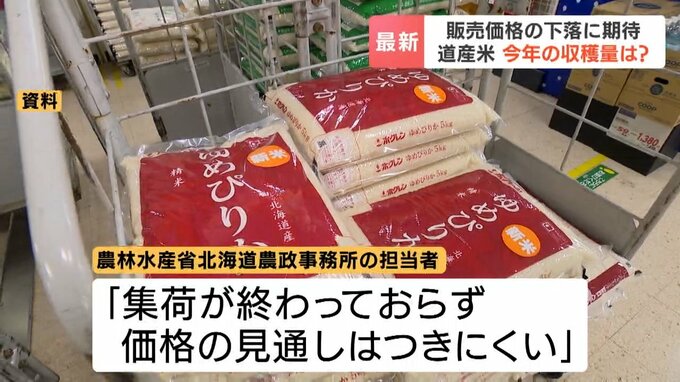 供給量の増加に伴い、販売価格の下落が期待されますが、農林水産省北海道事務所の担当者は「集荷が終わっておらず、価格の見通しはつきにくい」との見方を示しました。