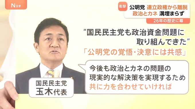 政治資金の問題における公明党の判断に対し、玉木代表は非常に理解を示しています。「この先、改革をする上でも共に協力していきたい」という姿勢も示しており、自民党にとってはさらに打撃が大きいと思います。
