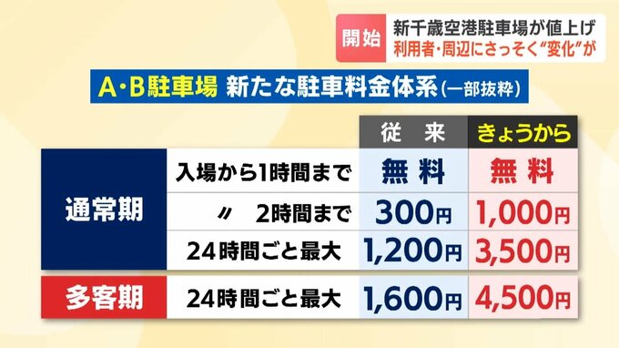 ターミナルに直結するA・B駐車場はこれまでの約3倍と、大幅な値上げとなりました。