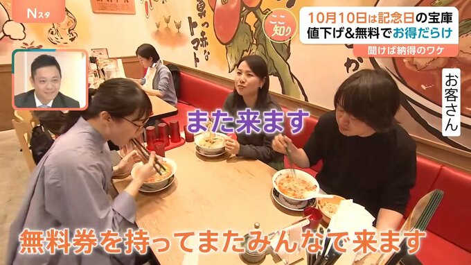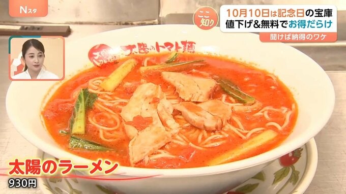 こちらのお店では、「トマトの日」に合わせて年に一度の「トマト祭」を11日まで開催。ラーメンを1杯注文すると、次回から使用できる「太陽のラーメン」の無料券が1枚もらえます。