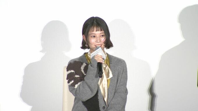 松村さんは “いよいよ公開したんだなという興奮と、やっぱり不安な気持ちがあります” と、やや緊張しながら挨拶。上映後の舞台挨拶ということで、観客の顔を見ながら “何ですかその表情は?” と訝しみつつ、 “ハッピーエンドなのか、何エンドなのか、終わって30分や1時間で決められるものじゃないのかなって。何なら、皆が話してる話よりも、じっくり一人で考えたいっていう顔にも見える。それだけ真摯に皆さんが受け止めてくれたんだなって、すごく嬉しい気持ちです” と笑顔を見せました。