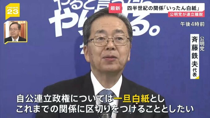 「自公連立政権については一旦白紙とし、これまでの関係に区切りをつけることとしたい」