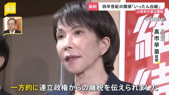 26年にわたり続いた自民党と公明党の連立関係に終止符が打たれることになりました。自民党の高市総裁は総理になれるのか。スタジオに生出演した、公明党・斉藤代表に詳しく聞きました。※10月10日(金)「news23」に出演しました
