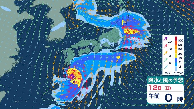 ■12日(日)の雨と風のシミュレーション
