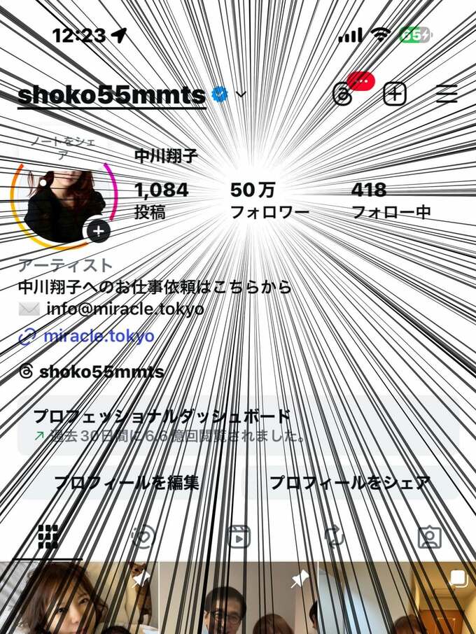 翔子さんは「50万フォロワー」と明記されたアカウントのプロフィール画面を投稿し「インスタ50万フォロワー!ありがとうございます」と感謝をテキスト。双子の妊娠から出産にかけて「みんな優しいインスタの世界に本当に助けてもらいました」と実感を込めて綴っています。