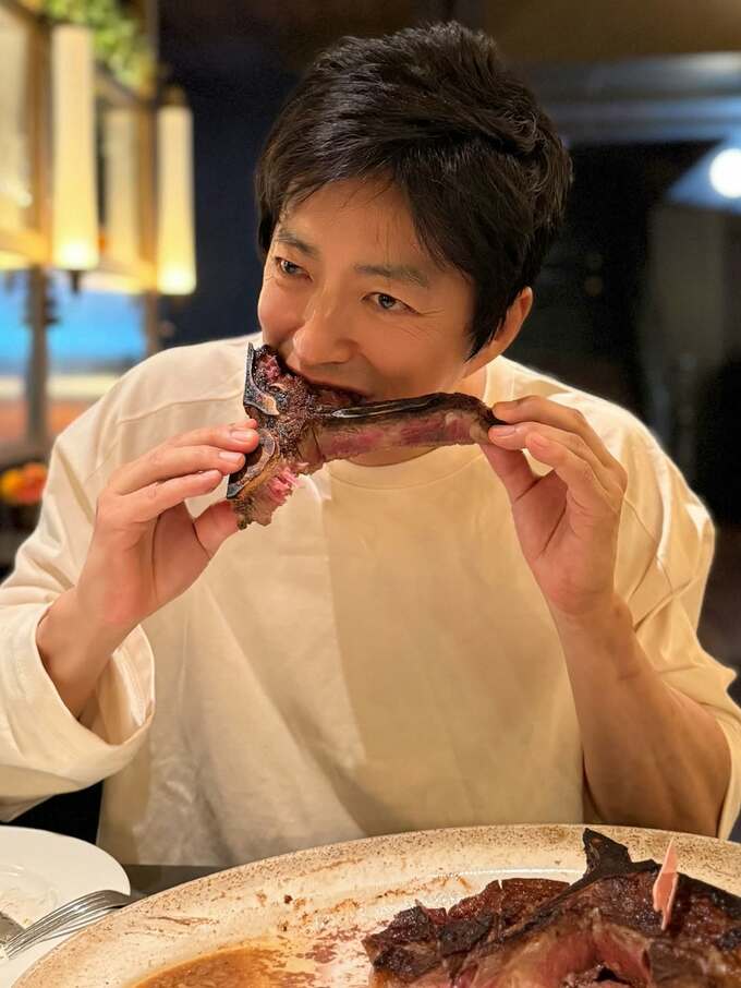 俳優の大沢たかおさんが自身のインスタグラムで、ワイルドな食事の模様を投稿しています。