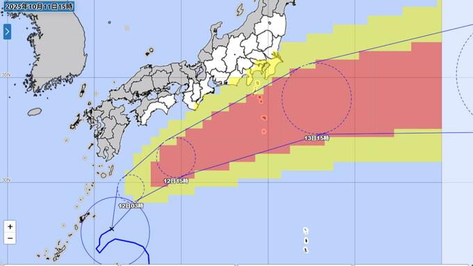 伊豆諸島では、12日から13日にかけて「うねりを伴う大しけ」となる見込みです。九州南部・奄美地方や沖縄地方でも高波に注意が必要です。