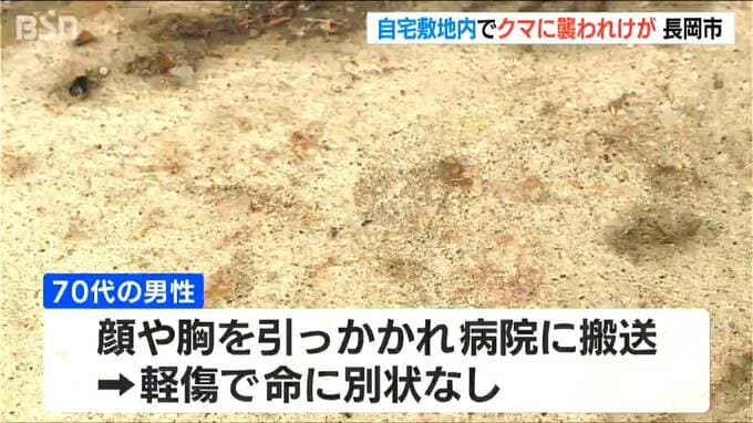 新潟県長岡市に住む70代の男性が11日、自宅の敷地内でクマに襲われけがをしました。命に別状はないということです。