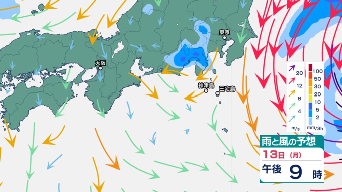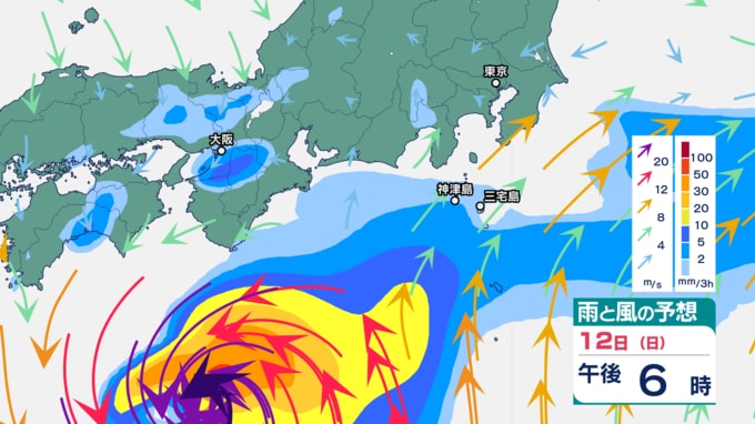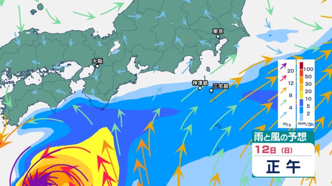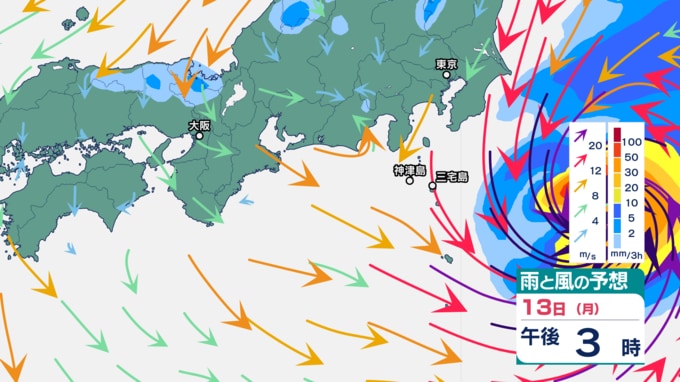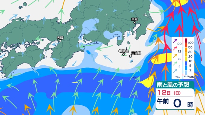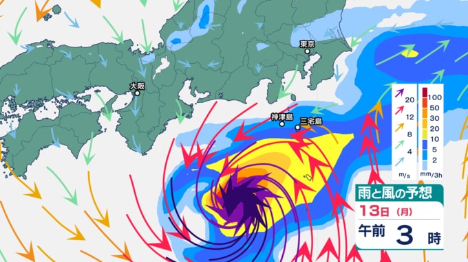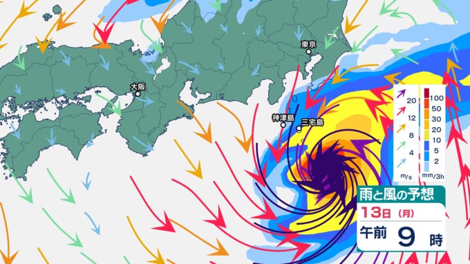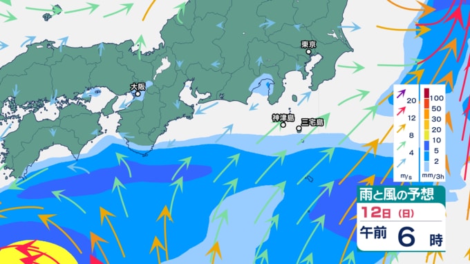 伊豆諸島では、9日の台風22号の記録的な大雨、暴風、高波の影響で、災害の危険度が高まりやすくなっている地域があります。特に13日は、不要不急の外出を控え、屋内では窓から離れるなど暴風に厳重に警戒をしてください。また12日から13日は、うねりを伴う高波、土砂災害、低い土地の浸水、河川の増水や氾濫に警戒してください。