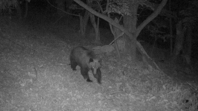 クマは、森の中の小道を南に向かって歩いていたということです。