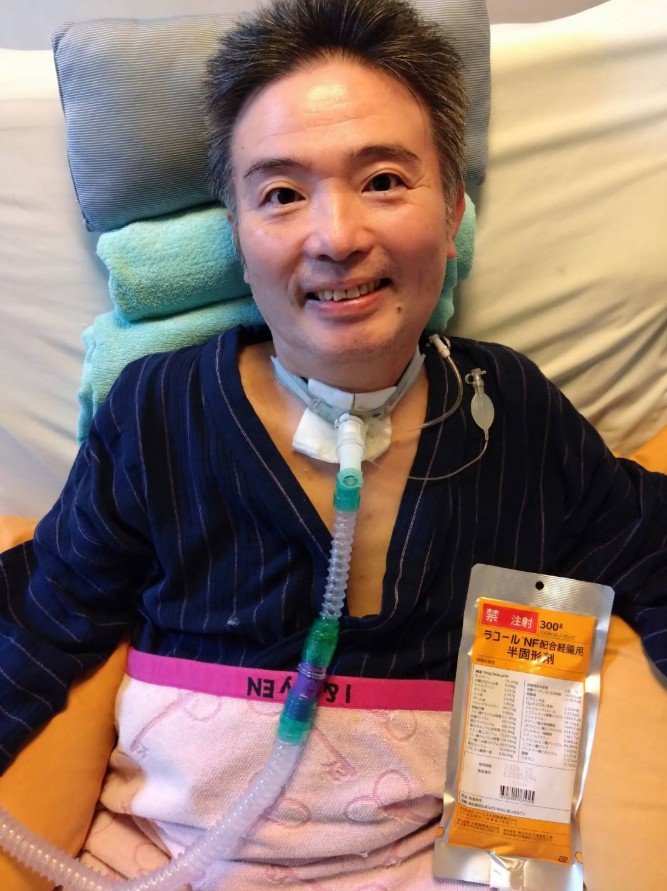 津久井教生さんは、「胃瘻からの栄養剤は仙豆なのです~」と題し、「昨日、最後の栄養剤ラコールを胃瘻から加圧パックで送りこみました いよいよ今日から、朝昼晩の1日3回栄養剤イノソリッドだけになります」と報告。