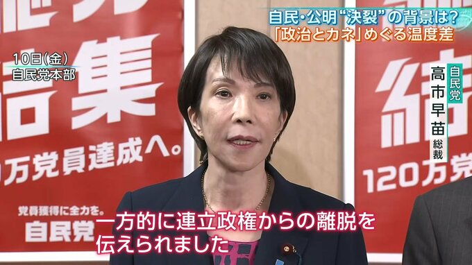 高市新総裁が就任したばかりの自民党。少数与党として、新たな連携相手を探していた矢先、長年のパートナーだった公明党から、連立離脱を突きつけられました。
