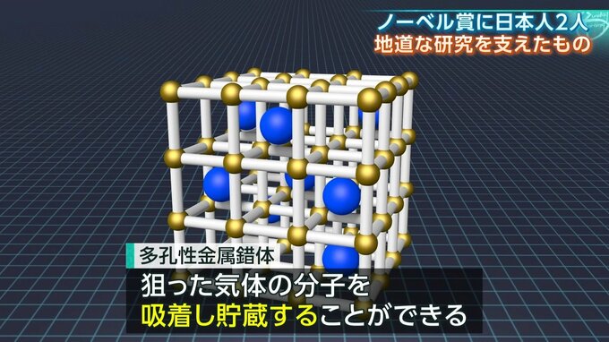 京都大学の北川進特別教授が、ノーベル化学賞を受賞。評価されたのは「多孔性金属錯体」の開発です。