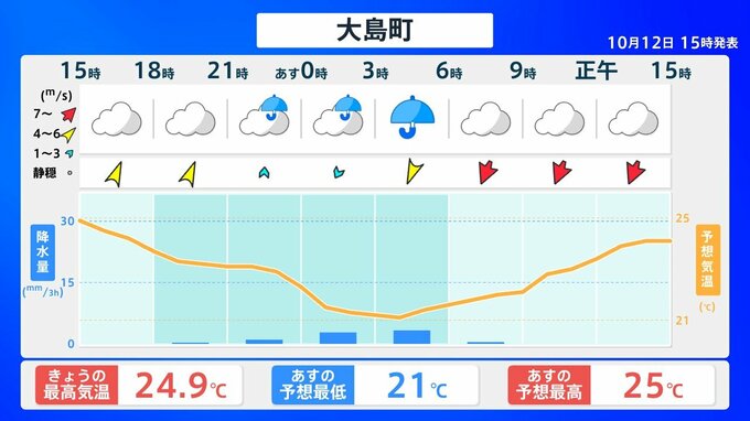 【台風情報】「台風23号」伊豆諸島は警戒を 3連休の全国各地の天気への影響は?今後の進路は? 気象予報士が解説 雨と風のシミュレーション 【気象庁 12日午後9時45分発表】 RSK山陽放送 2025年10月12日(日) 22:07 国内 当該エリアの24時間の予報は? 当該エリアの今後24時間の天気予報は、【画像㊻~】の通りです。 【画像㊻】 【画像㊼】 【画像㊽】 【画像㊾】 【画像㊿】 【画像51】 【画像52】 今後の気象情報に注意してください。