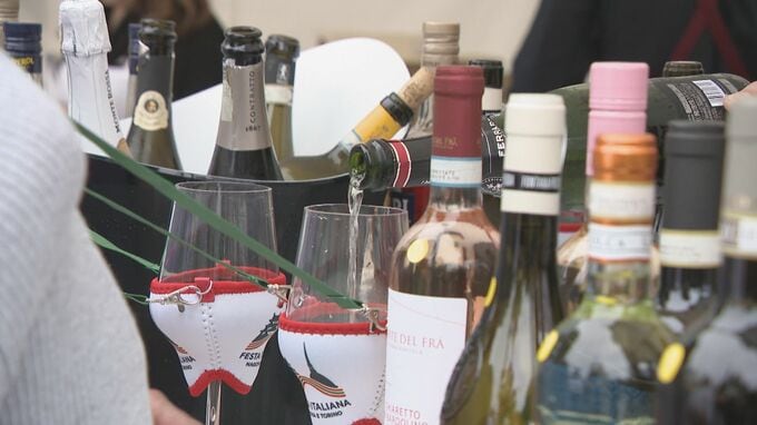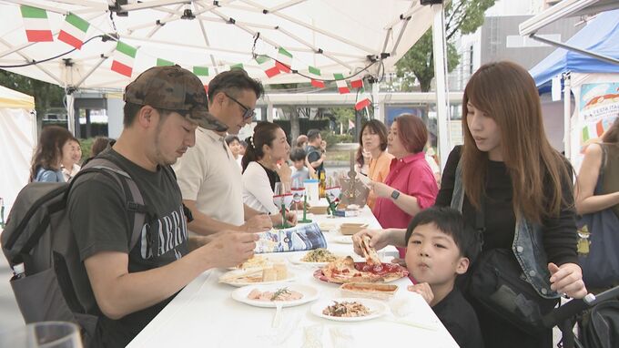 栄には名古屋のイタリア料理店が大集合。ピザやパスタなどのグルメには長い行列が。グラスを首にぶら下げてワインを飲み比べできるコーナーもあり、訪れた人はハムやチーズなどと一緒に、本場イタリアの味に舌鼓を打っていました。