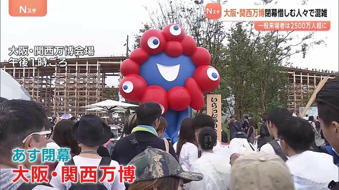 あす閉幕する大阪・関西万博。一般来場者数はきのうで2500万人を超え、会場はきょうも多くの人で混雑しています。半年の会期を終えて、あす閉幕を迎える大阪・関西万博。きょうも大勢の人が訪れました。「すごく楽…