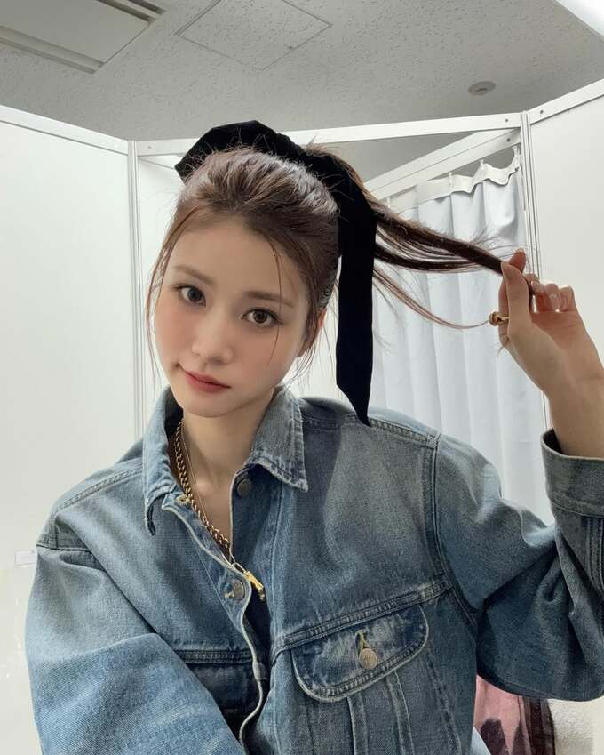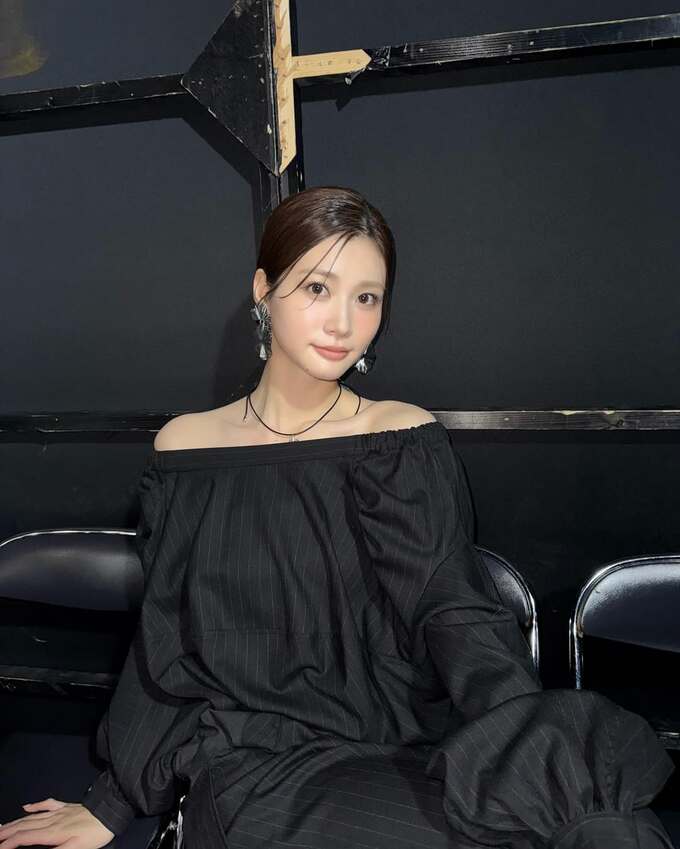 さらに別の写真では、黒いリボンを髪に結んだショットや、オフショルダーの黒いトップスに大ぶりの銀色イヤリングを合わせたエレガントな装いも披露しています。
