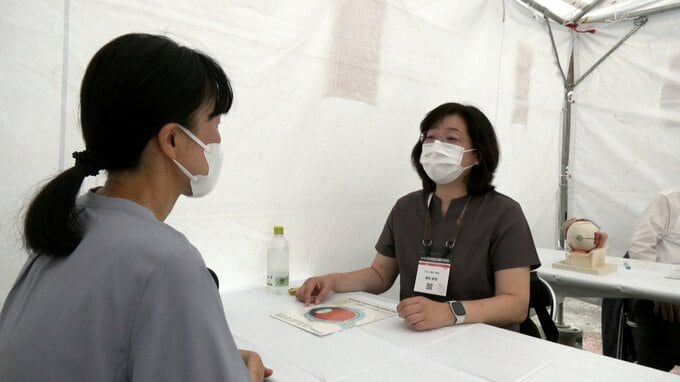 会場には眼科医による無料の「目の健康相談コーナー」が設けられ、訪れた人は目に関する不安などについて熱心にアドバイスを受けていました。