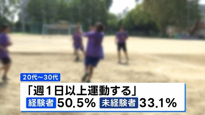 学校で運動部やスポーツサークルに所属していた人は、所属していなかった人に比べ、卒業後に運動をする頻度が高いことがスポーツ庁の調査で明らかになりました。去年、全国の6歳~79歳の男女合わせておよそ6万人を…