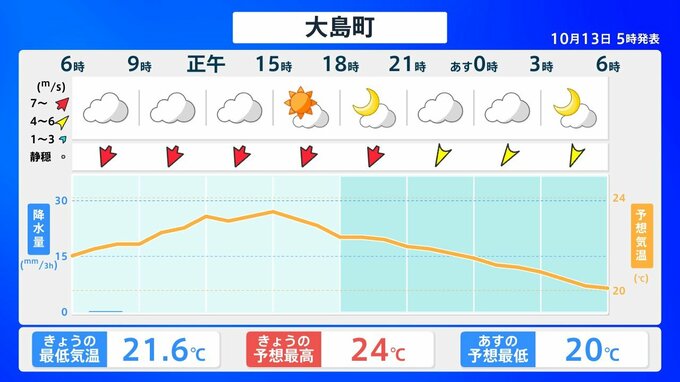 【台風情報】「台風23号」伊豆諸島は暴風に警戒を!日本列島沿岸部の各地への影響は?気象予報士が解説 雨と風のシミュレーション 【気象庁 13日午前8時30分発表】 RSK山陽放送 2025年10月13日(月) 08:30 国内 当該エリアの24時間の予報は? 当該エリアの今後24時間の天気予報は、【画像㊻~】の通りです。 【画像㊻】 【画像㊼】 【画像㊽】 【画像㊾】 【画像㊿】 【画像51】 【画像52】 今後の気象情報に注意してください。
