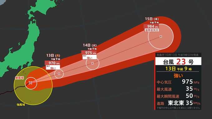 「強い台風23号」は、八丈島を暴風域に巻き込みながら東北東に進んでいて、強風域が関東地方の一部にかかっています。また新たに「台風のたまご=熱帯低気圧」が、日本の南で発生しました。