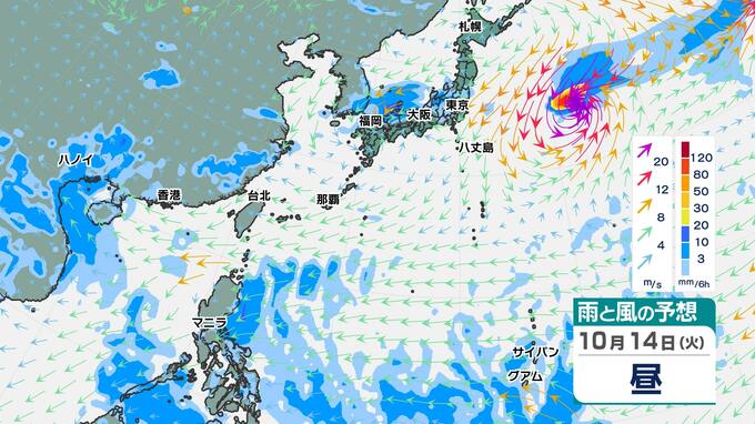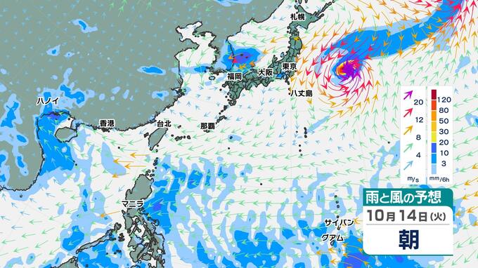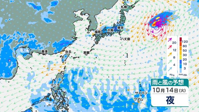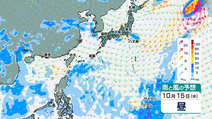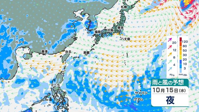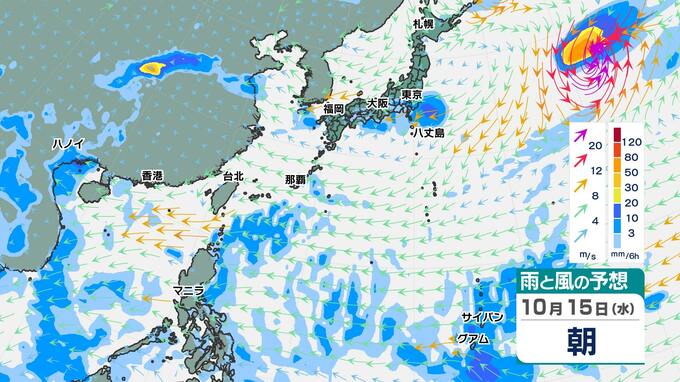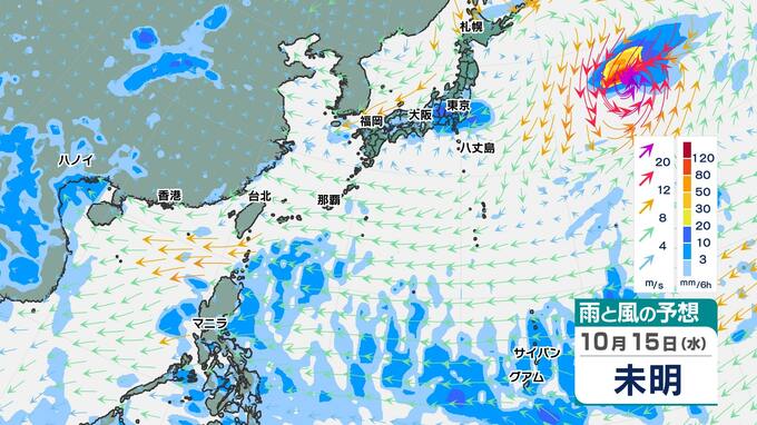 シミュレーションでは、台風23号の「反時計回りの渦」が、伊豆諸島から日本の東の海上を進んでいきます。また、これとは別の「反時計回りの渦」が16日(木)頃からフィリピンの東の海上に現れ、「渦」はだんだんとハッキリとしてきて、西に向かいそうです。