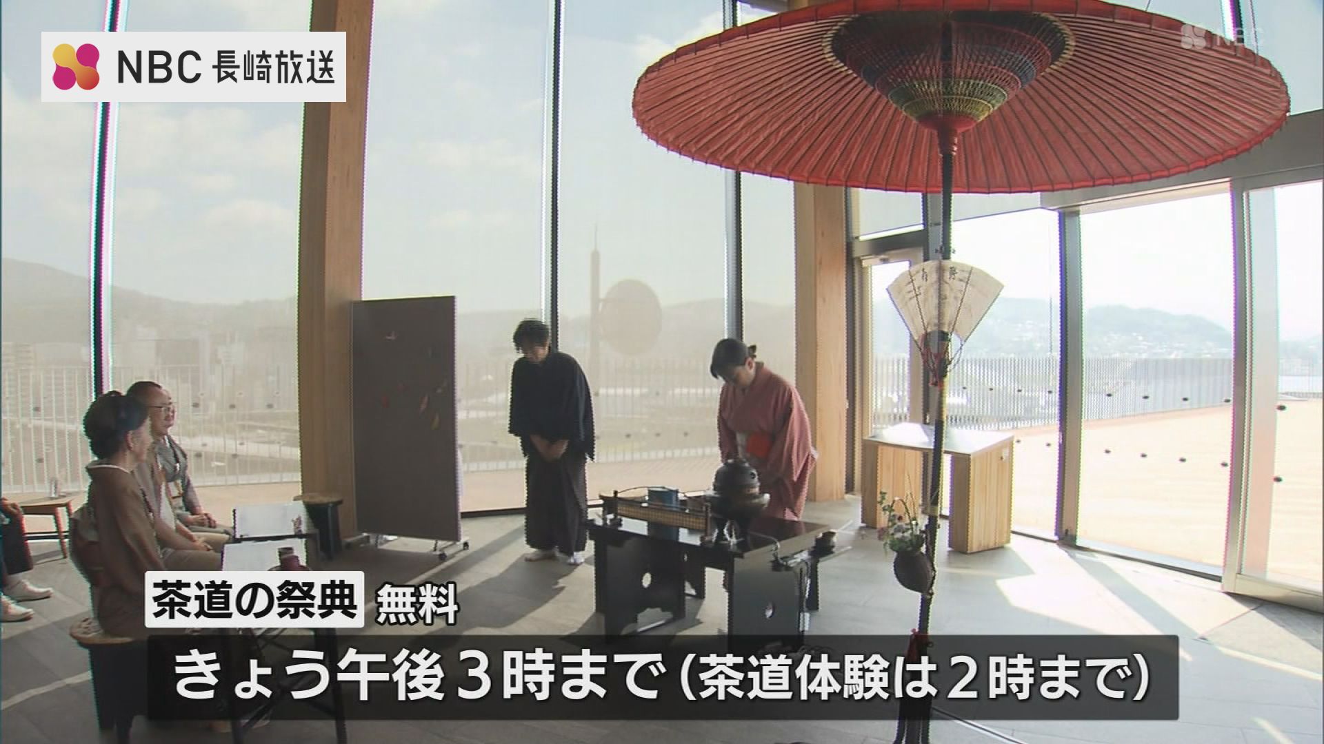 「茶道の祭典」は13日の午後3時まで開かれ、県庁の8階では、長崎港の景色をお茶と共に味わうことができます。