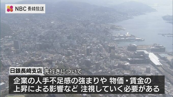 日銀長崎支店は、先行きについて、企業の人手不足感の強まりや物価・賃金の上昇による影響などを注視していく必要があるとしています。